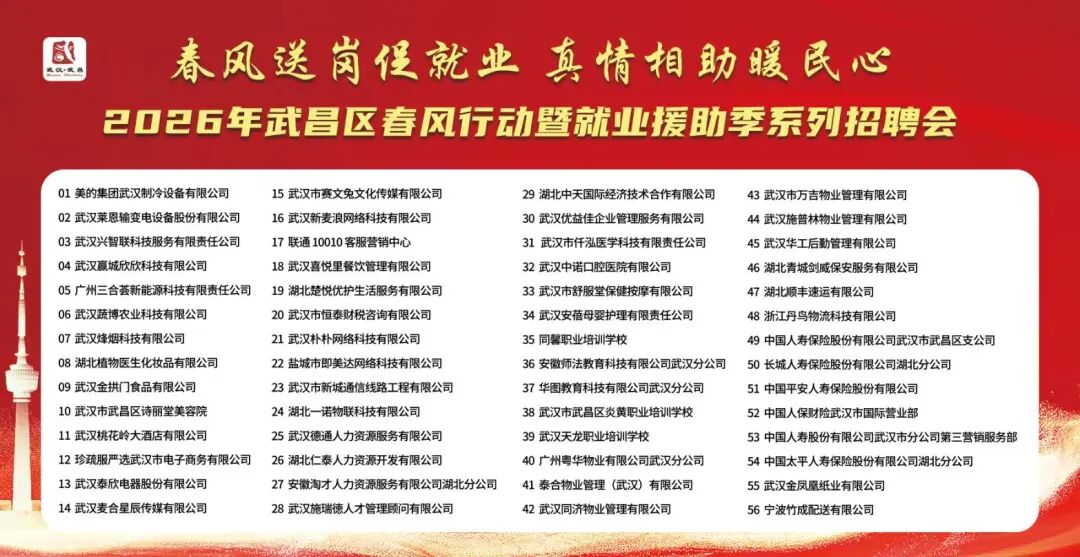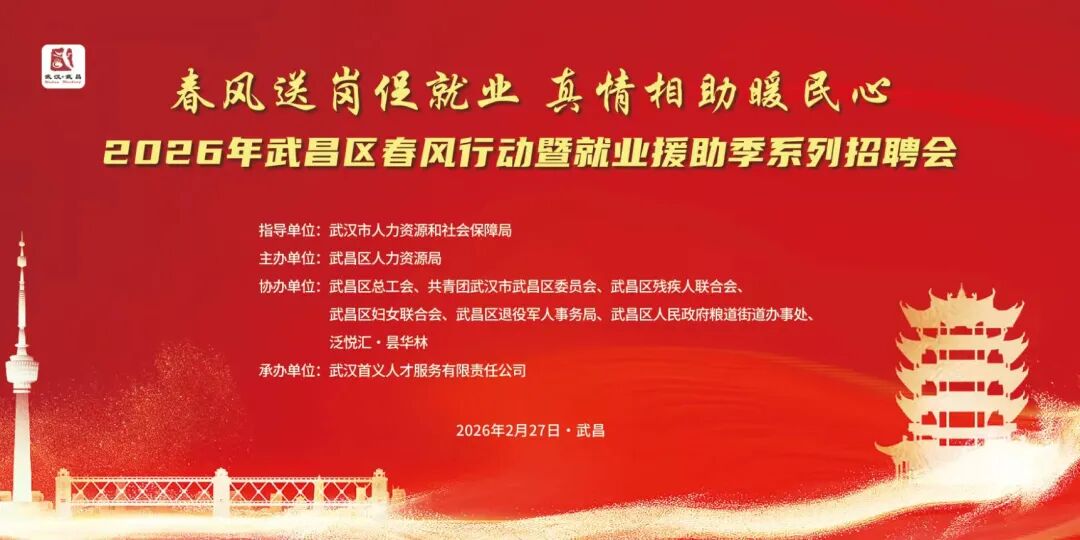 深入贯彻党的二十届四中全会、中央经济工作会议及省、市相关会议精神,集中做好困难群体就业兜底帮扶、促进劳动者就业增收,全力促就业、保民生、助发展,武昌区拟举办以2026年“春风送岗促就业 真情相助暖民心”为主题的春风行动暨就业援助季招聘会。